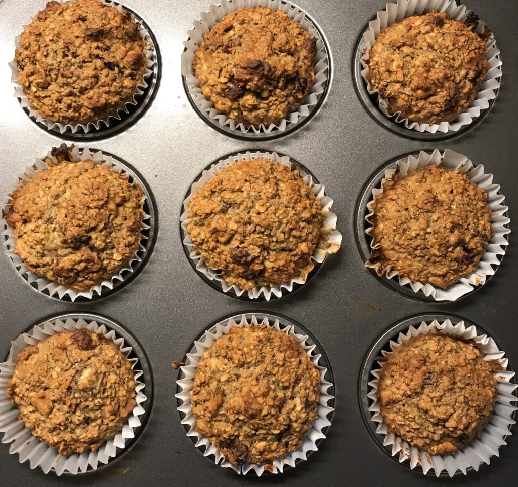 Preheat oven 425 Fahrenheit/ 220 Celsius; Use muffin pan with muffin cup lining; Combine all dry ingredients in a large bowl ; Pour wet ingredients into dry ingredients and mix well; Spoon batter into muffin liners and bake for 15-20 minutes. Don’t over fill muffin liners; leave a little room. Remove from oven and let them sit for 10 minutes.